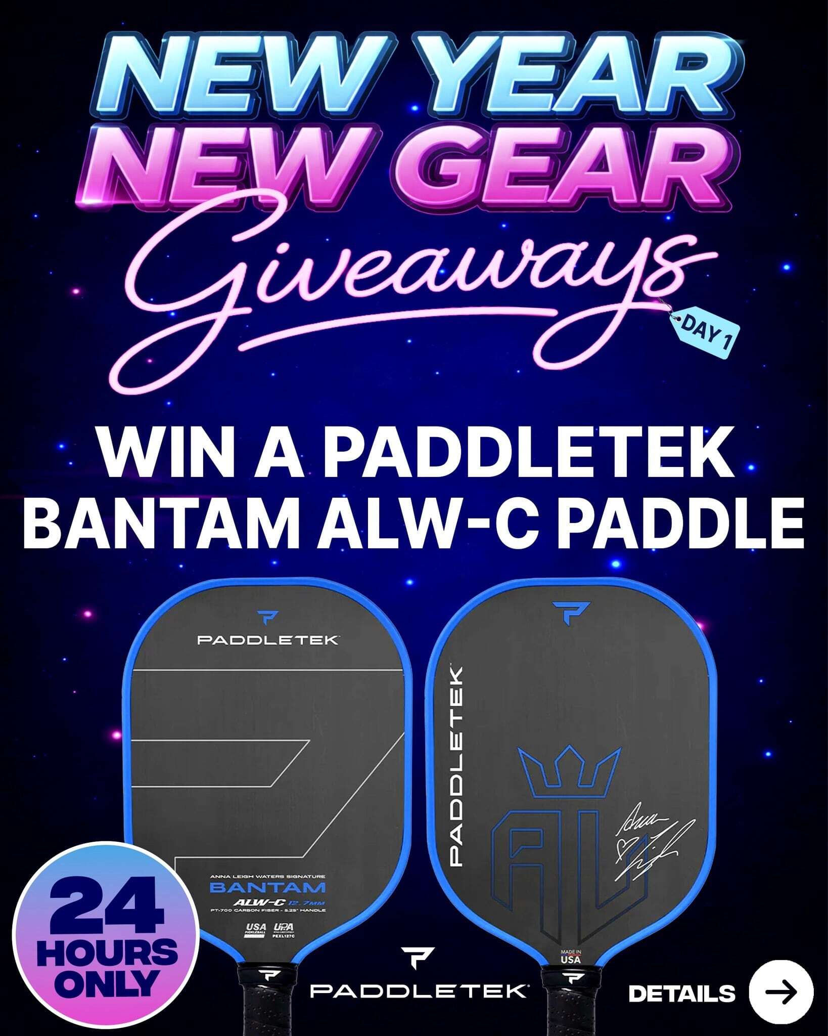 To celebrate the New Year we are partnering with Paddletek to give away a brand new Bantam ALW-C pickleball paddle! š„
