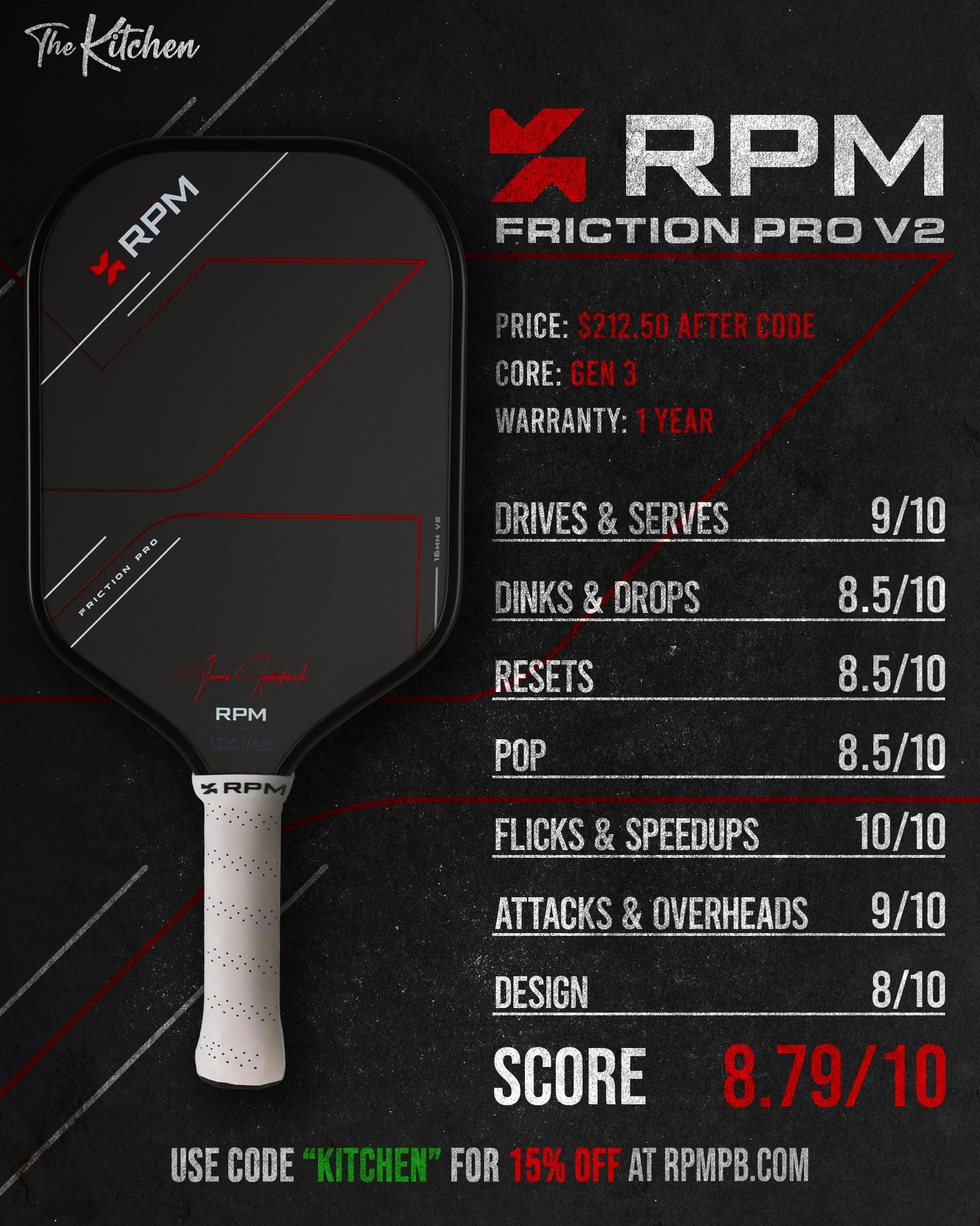 🔗 Read our RPM Friction Pro V2 review here and shop all RPM paddles here — use code “KITCHEN” at checkout for 15% off